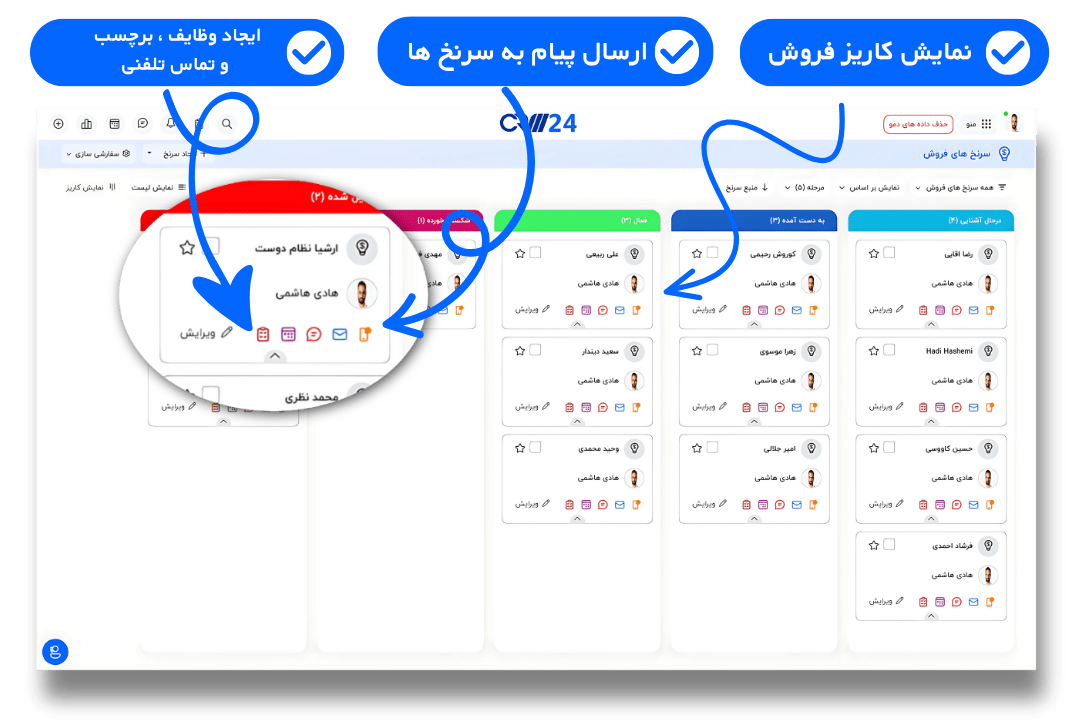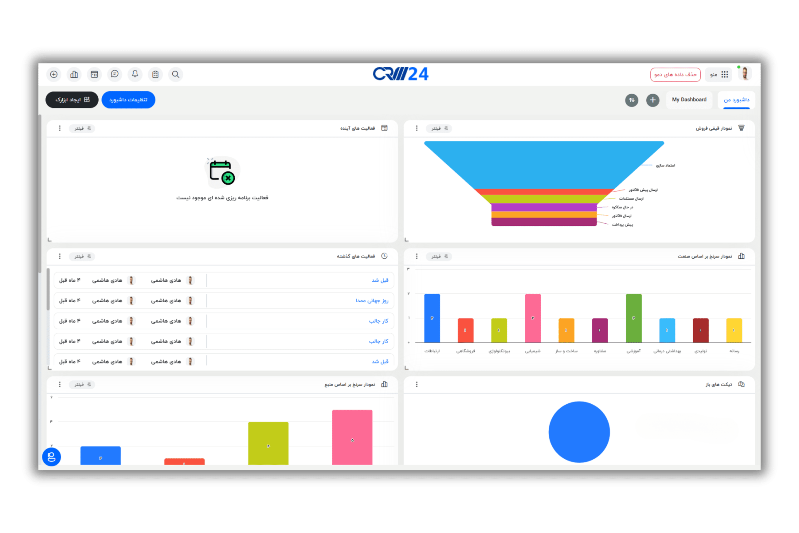 با CRM24، قیف فروش شما فقط یک ابزار نمایش نیست — بلکه یک سیستم زنده، هوشمند و منعطف برای مدیریت کل مسیر فروش است.
