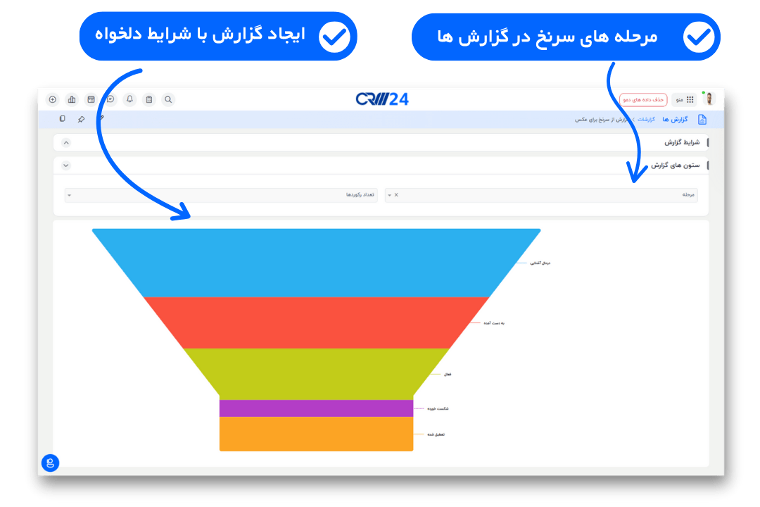 🎯 برای ساختن فرآیند فروشی شفاف، منظم و قابل تحلیل، همین امروز از ابزار قیف فروش CRM24 استفاده کنید.
