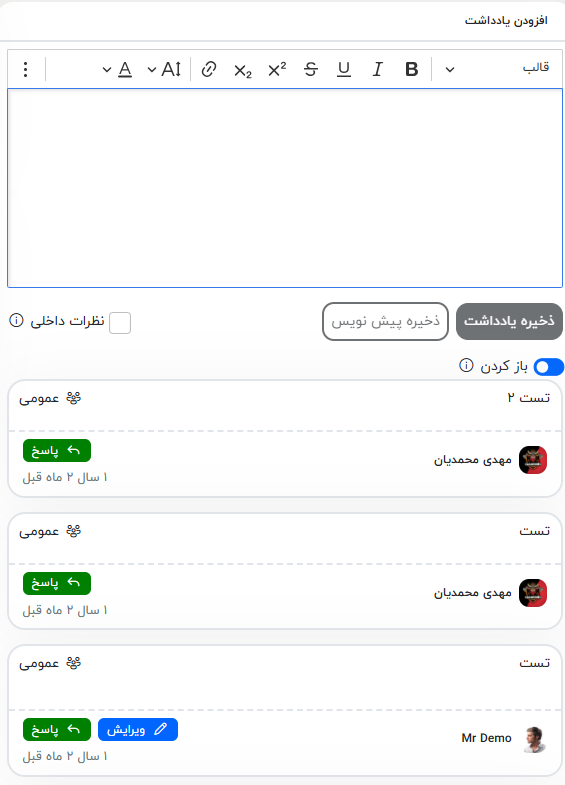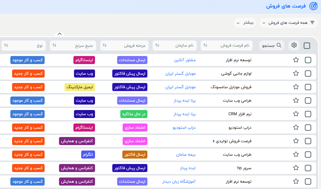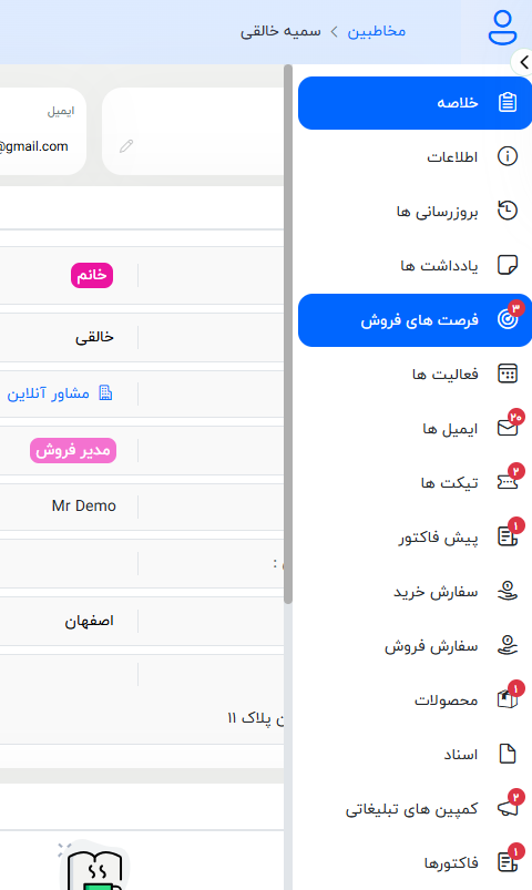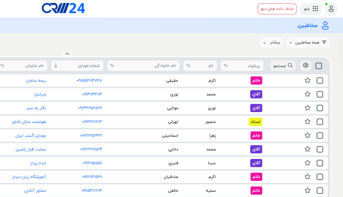شما میتوانید مشتری ها را در دسته های مختلف بر اساس معیار های متفاوت دسته بندی کنید و اطلاعاتشان را به صورت مجزا در پروفایل مخاطبین و یا سازمان داشته باشید. در هر بخشی میتوانید برای سایر همکاران خود یادداشت بگذارید و در همان بخش سازمان یا مخاطبین با مشتری خود در تعامل باشید و تیکت ها را بررسی کنید. وقتی مشتریان خودتان را دسته بندی کنید میدانید که از هر نوع چه تعداد مشتری دارید و هر کدام در چه مرحله ای از روند فروش یا پشتیبانی قرار گرفته اند.