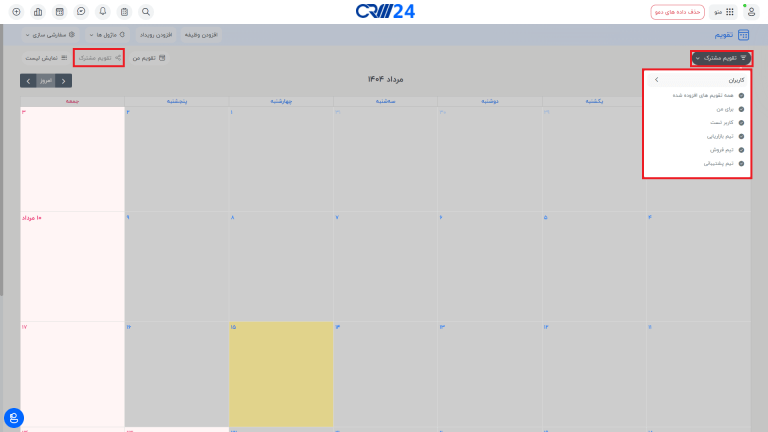 تقویم در داشبورد امکان برنامهریزی، نمایش و مدیریت رویدادها و زمانبندی فعالیتهای روزانه را فراهم میکند.