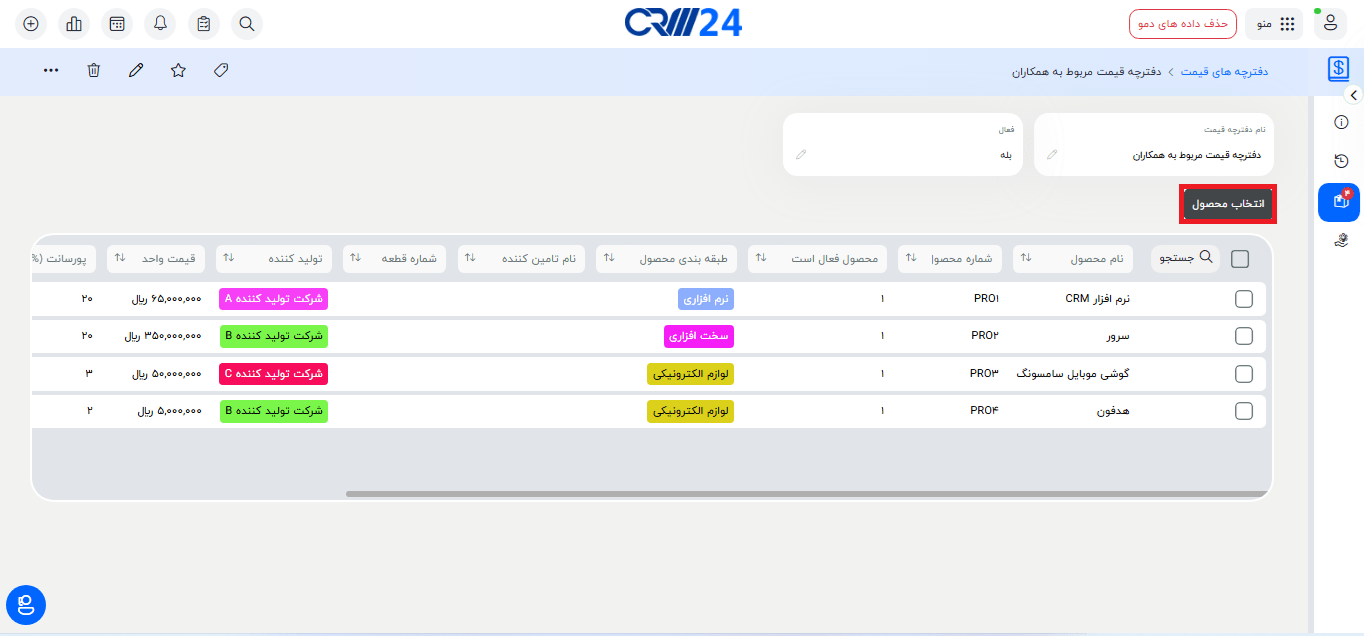مدیریت دفترچه‌های قیمت در نرم افزار crm24
