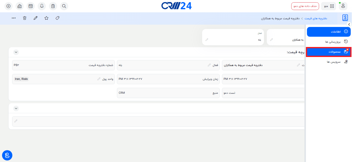 کار با دفترچه‌های قیمت در نرم افزار crm24