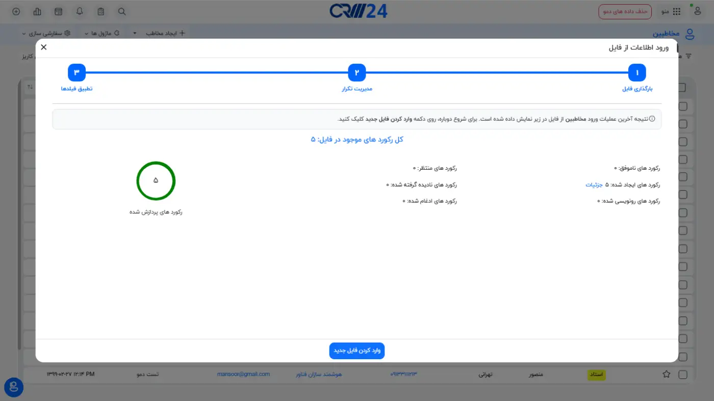 گزارش تعداد رکوردهای وارد شده و ادغام شده نمایش داده می شود.