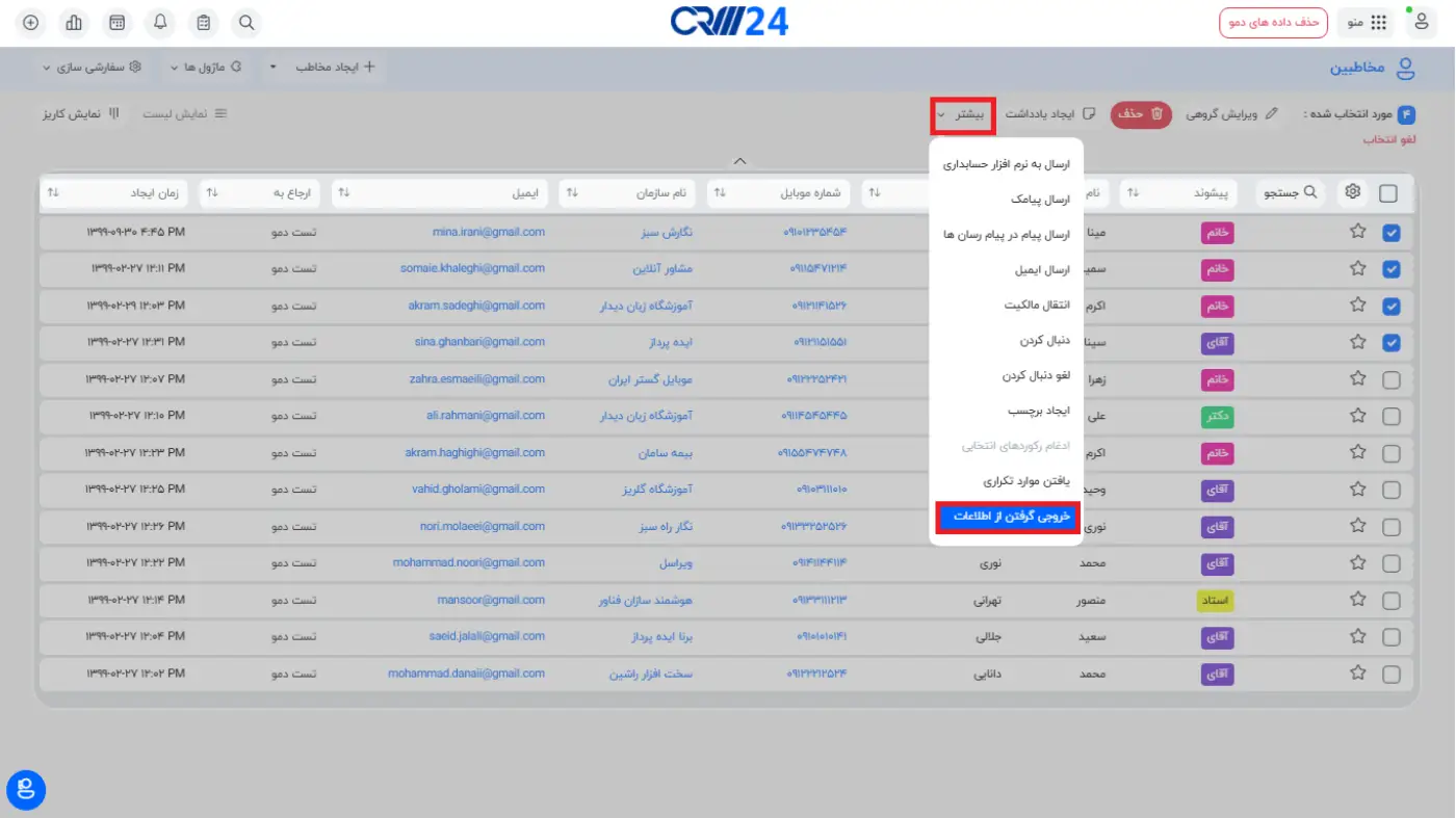 - خروجی گرفتن کل اطلاعات: تمام رکوردها در ماژول مخاطبین
