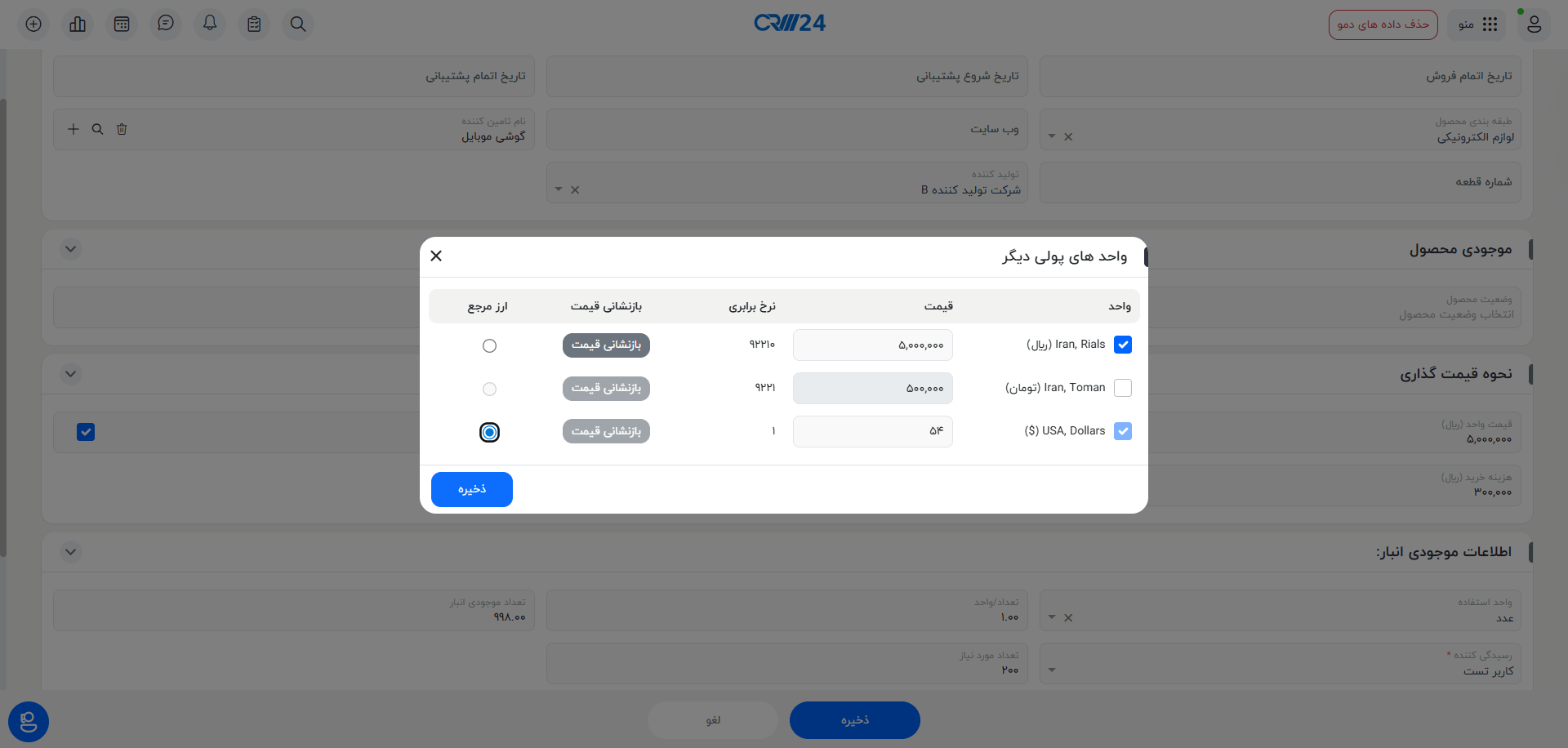 ایجاد واحد پولی جدید یا ارز جدید در نرم افزار crm24